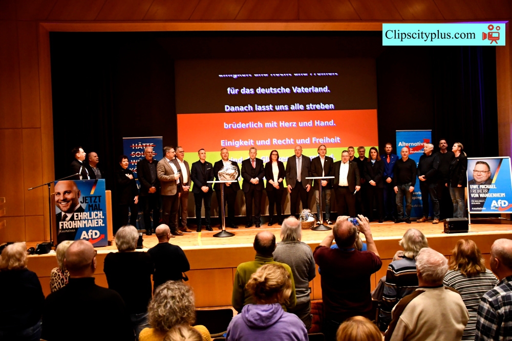 Politik . Aktuelle) AfD- Ereignisse in der Jahnhalle in Geislingen : Hans-Georg Maaßen als Gastredner Geislingen Steige für eine zentrale Wahlkampfveranstaltung der AfD im Landkreis Göppingen. Knapp zwei Wochen vor dem Wahltermin am 8. März präsentie